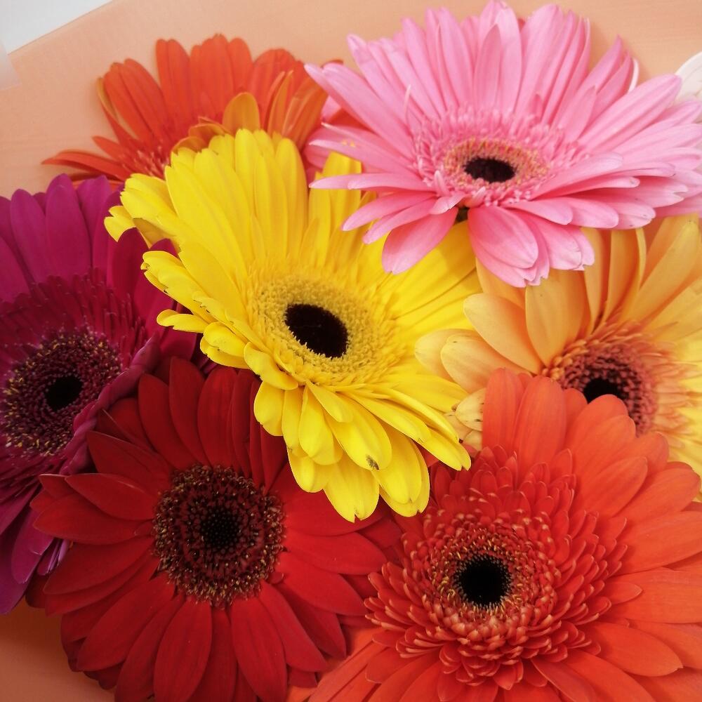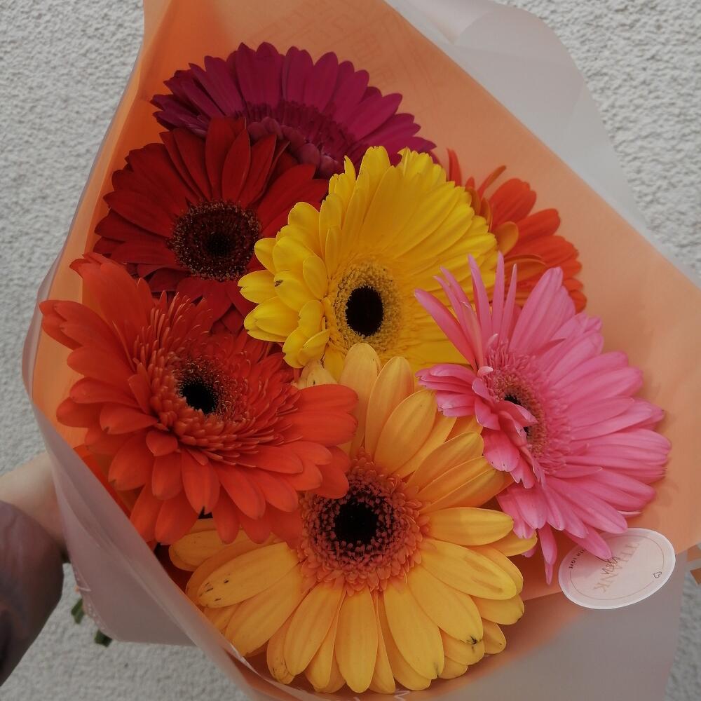 Букет из 7 гербер mix “Ромашки” 50 см