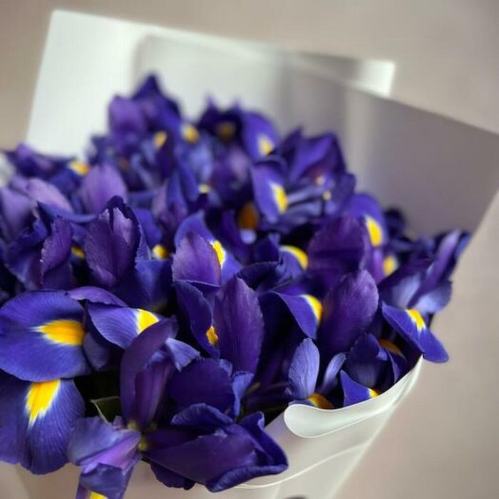 ирисы – 15 шт.декоративная упаковка – 1 шт.Атласная лента – 1 шт.