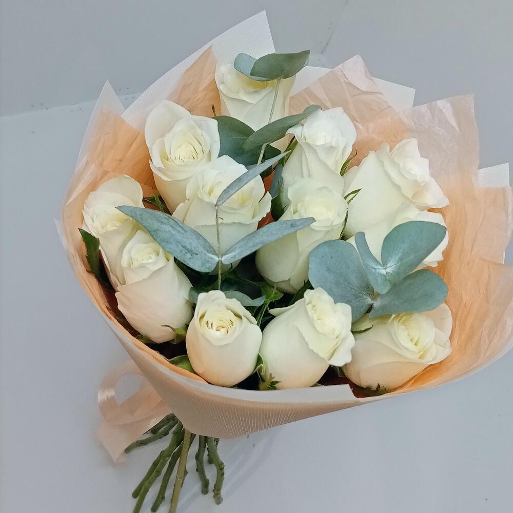 роза кения – 13 шт.Эвкалипт – 1 шт.Дизайнерская упаковка – 1 шт.