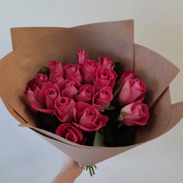 розы 40 см – 19 шт.упаковка крафт-бумага – 1 шт.