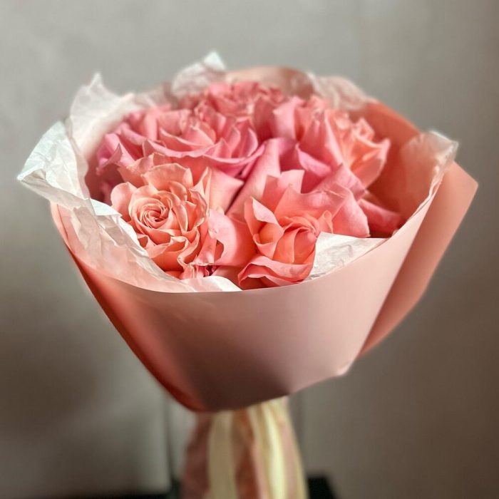 Одноголовая роза – 5 шт.декоративная упаковка – 1 шт.Атласная лента – 1 шт.