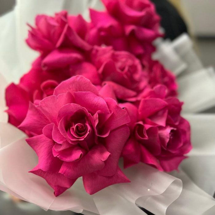 Французская роза – 7 шт.Пленка матовая – 9 шт.Лента атласная – 2 шт.