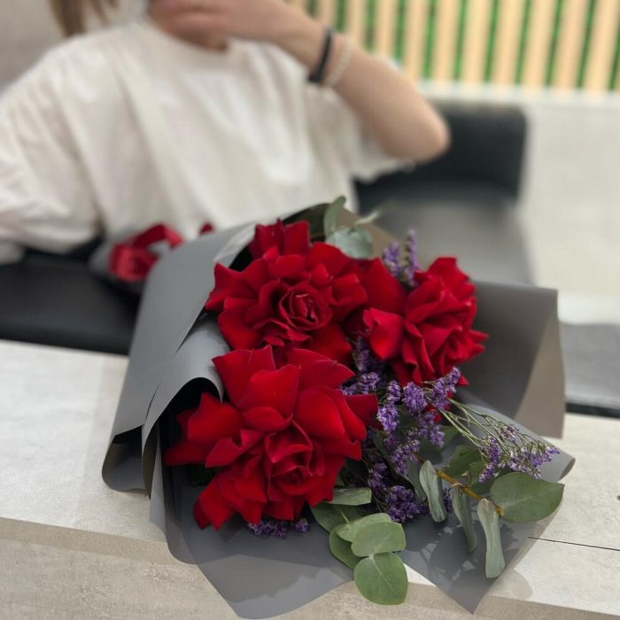 Red (розы, лимониум, эвкалипт)